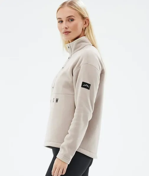 Comfy W Fleece Trui Dames Sand|De Comfy-sweater is comfortabel van naam, comfortabel van aard en heeft een constructie van 250 g/m² 100% gerecycled polyester fleece die gegarandeerd warmte vasthoudt in alle weersomstandigheden. Deze fleece heeft een gladde constructie met knopen over de helft van het lijf en een col en is ideaal om als tussenlaag te dragen op de piste of om thuis mee rond te hangen. Dit superzachte materiaal voelt comfortabel aan op de huid en de elastische manchetten zorgen voor een goede pasvorm en warmtebeheersing. Verlaagde schoudernaden verminderen wrijving tijdens het skiën en een aantal gelikte Dope-accenten scoren extra stijlpunten, waar je ook gaat, waardoor de Comfy dit seizoen je nieuwe favoriet wordt.