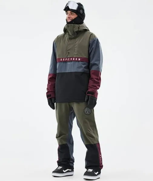 Legacy Track Snowboard jas Heren Olive Green/Burgundy/Metal Blue/Black|Een retro model met alle technische eigenschappen van nu. De Legacy is een anorak in jaren 90-stijl met een rechte pasvorm en technische kenmerken die niet onderdoen voor de meest geavanceerde ski-jassen. Dit pullover-model is gemaakt voor relaxte dagen op de piste. Als je geen fancy ritsen of andere ingewikkelde details nodig hebt, is de Legacy voor jou de perfecte keuze. De Legacy is nu gemaakt van verbeterd 4-way stretchmateriaal, zodat je maximaal kunt genieten van ieder moment in de sneeuw.