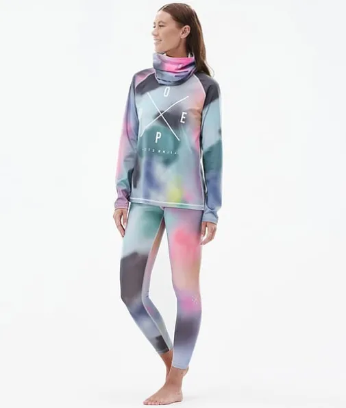 Snuggle W Basislaag Top Dames 2X-Up Aurora|De nieuwste Snuggle-baselayers zijn perfect voor al je avonturen op de piste en daarbuiten. Ze zijn gemaakt van een elastische, ademende mix van elastaan en polyester, die ervoor zorgt dat ze snel drogen en vocht afvoeren. De Anti-Odour HeiQ-technologie voorkomt geurtjes en dankzij de zachte binnenkant zitten ze supercomfortabel. De opstaande kraag houdt je lichaamswarmte beter vast en dankzij de extra nekwarmer kun je zelf voor extra warmte of verkoeling zorgen, afhankelijk van de omstandigheden. De verstevigde flatlocknaden voorkomen schuren en zorgen voor optimale slijtvastheid. Snuggle-baselayers zijn het resultaat van een jarenlang proces van productverbeteringen, zodat jij ieder seizoen weer kunt genieten van maximaal comfort.