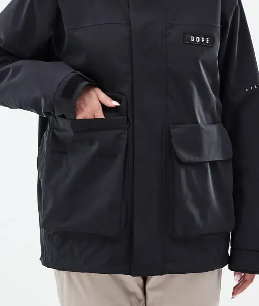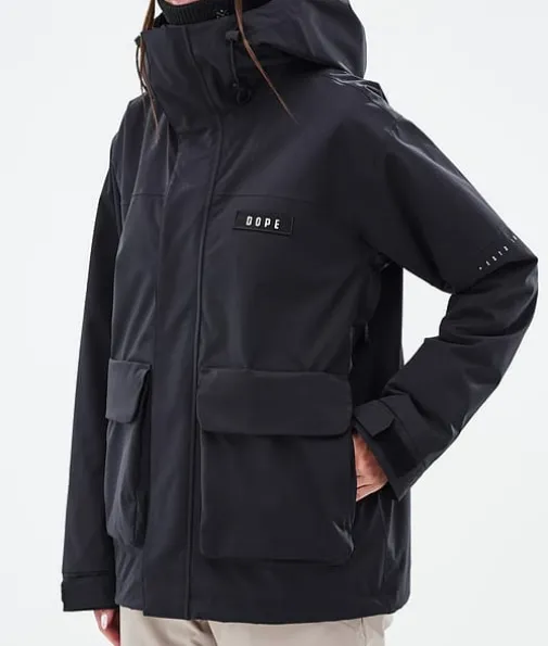 Acme W Snowboard jas Dames Black|Dit is de Dope Acme jas! Deze jas heeft een gestroomlijnd ontwerp, een sluiting zonder knopen aan de voorkant en twee grote zakken, voor een stoere utility look. Draag dit retro model gewoon zo of trek het koord aan de onderkant aan voor een kortere, cropped look. De Acme is gemaakt van 4-way stretchmateriaal voor maximale bewegingsvrijheid. Hij biedt alles wat je nodig hebt, maar is toch heel compact: perfect om het hele seizoen mee los te gaan in de sneeuw. Deze veelzijdige en lichte jas heeft alles in huis om je nieuwe winterfavoriet te worden.