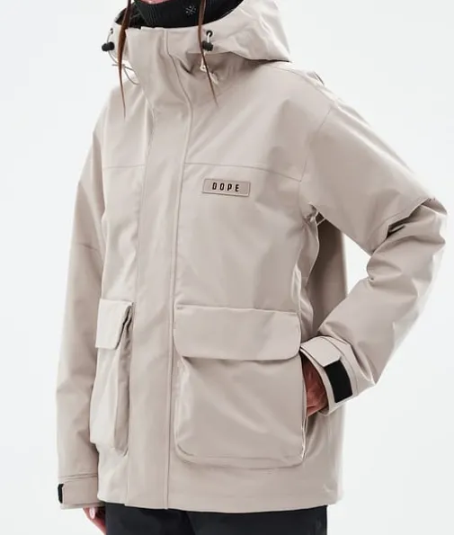 Acme W Snowboard jas Dames Sand|Dit is de Dope Acme jas! Deze jas heeft een gestroomlijnd ontwerp, een sluiting zonder knopen aan de voorkant en twee grote zakken, voor een stoere utility look. Draag dit retro model gewoon zo of trek het koord aan de onderkant aan voor een kortere, cropped look. De Acme is gemaakt van 4-way stretchmateriaal voor maximale bewegingsvrijheid. Hij biedt alles wat je nodig hebt, maar is toch heel compact: perfect om het hele seizoen mee los te gaan in de sneeuw. Deze veelzijdige en lichte jas heeft alles in huis om je nieuwe winterfavoriet te worden.
