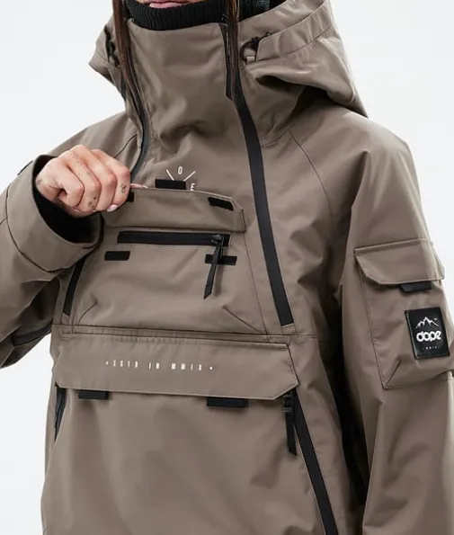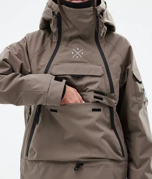 Akin W Ski jas Dames Walnut|De Akin is alles wat je ooit in een jas wilde, en nog veel meer. We hebben ons laten inspireren door de old school utility jackets en hebben deze voorzien van zeven buitenzakken. Geen zorgen meer met dit geweldige ontwerp. Rits dicht, Strap in, en ga het grote onbekende tegemoet. De Akin is waterdicht en geïsoleerd genoeg om de zwaarste weersomstandigheden aan te kunnen. Het is een makkelijke parkcruiser, maar ook een zware bergracer. Dit is waar we de microfoon zouden laten vallen, als we er een hadden.