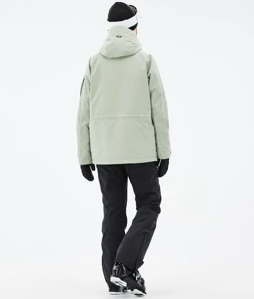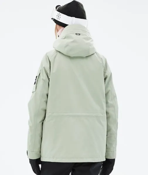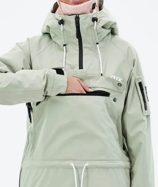 Annok W Ski jas Dames Soft Green|Dope's eigen kenmerkende stijl, de Annok stormt terug in het assortiment dit jaar om opnieuw te heersen over alle andere anoraks. We hebben hem goede waterdichtheid en isolatie gegeven om alles aan te kunnen wat de bergen te bieden hebben, en veel gelikte kleine details zoals onze contrasterende trekkoorden en het driedubbele zakkensysteem. Dat maakt de Annok tot een serieuze, op streetstyle geïnspireerde anorak die klaar is om alles van het park tot de poeder te verslaan, en er daarbij geweldig uitziet.