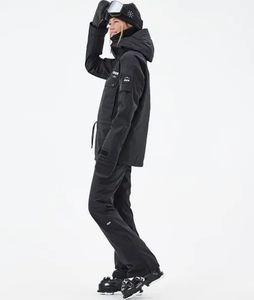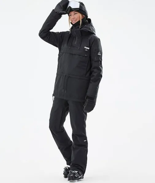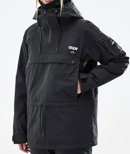 Annok W Ski jas Dames Blackout|Dope's eigen kenmerkende stijl, de Annok stormt terug in het assortiment dit jaar om opnieuw te heersen over alle andere anoraks. We hebben hem goede waterdichtheid en isolatie gegeven om alles aan te kunnen wat de bergen te bieden hebben, en veel gelikte kleine details zoals onze contrasterende trekkoorden en het driedubbele zakkensysteem. Dat maakt de Annok tot een serieuze, op streetstyle geïnspireerde anorak die klaar is om alles van het park tot de poeder te verslaan, en er daarbij geweldig uitziet.