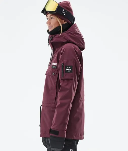 Annok W Snowboard jas Dames Don Burgundy|Dope's eigen kenmerkende stijl, de Annok stormt terug in het assortiment dit jaar om opnieuw te heersen over alle andere anoraks. We hebben hem goede waterdichtheid en isolatie gegeven om alles aan te kunnen wat de bergen te bieden hebben, en veel gelikte kleine details zoals onze contrasterende trekkoorden en het driedubbele zakkensysteem. Dat maakt de Annok tot een serieuze, op streetstyle geïnspireerde anorak die klaar is om alles van het park tot de poeder te verslaan, en er daarbij geweldig uitziet.
