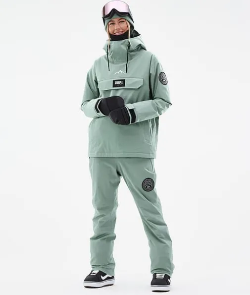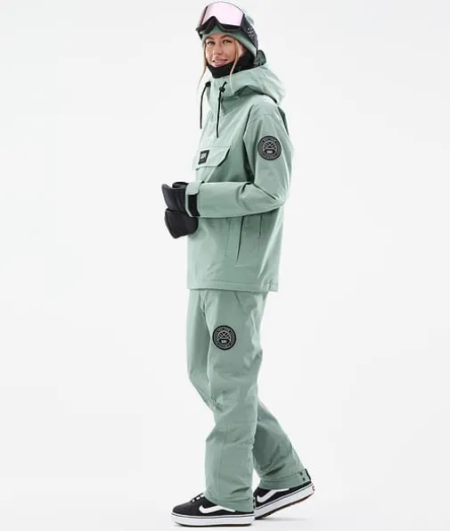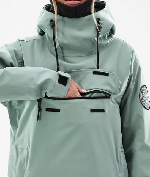 Blizzard W Snowboard jas Dames Faded Green|De Blizzard combineert het compacte ontwerp van een hoodie met de functionaliteit van een ski-jas, zodat jij je ongehinderd kunt uitleven in de sneeuw. Deze waterdichte, lichtgewicht pullover-jas heeft een minimalistisch design met alle technische kenmerken om maximaal te genieten op de piste en daarbuiten. Bovendien staat ons supersterke 4-way stretchmateriaal garant voor comfort en prestaties in alle weersomstandigheden. Dit model is een echte favoriet van ons team en onze riders. En terecht.