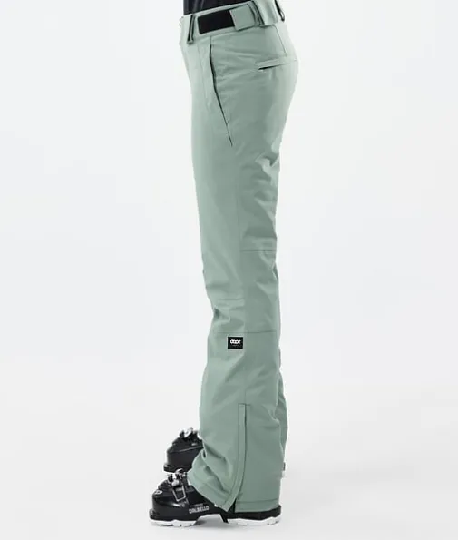 Con W Skibroek Dames Faded Green|Vorm en functie komen samen in de Con. Ons team en onze riders vinden deze broek echt geweldig en dat is niet voor niets. Hij sluit comfortabel aan rond je dijen, maar biedt toch maximale bewegingsvrijheid dankzij ons verbeterde 2-way stretchmateriaal. Je profiteert dus van alle voordelen van een slimfit pasvorm, zonder dat de broek ergens knelt. Met de Con ben je helemaal klaar voor een dag in de sneeuw.