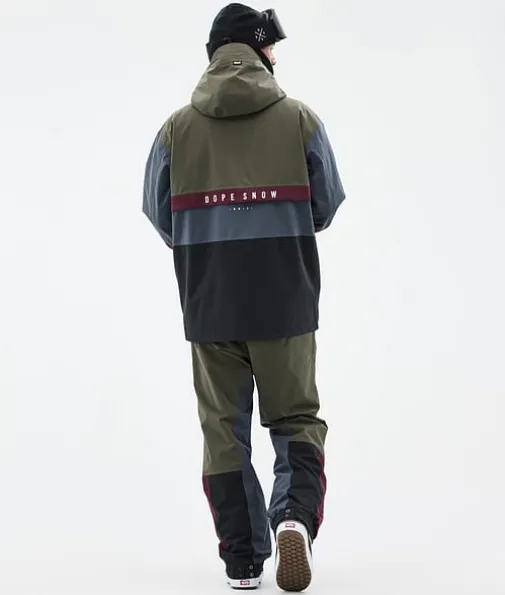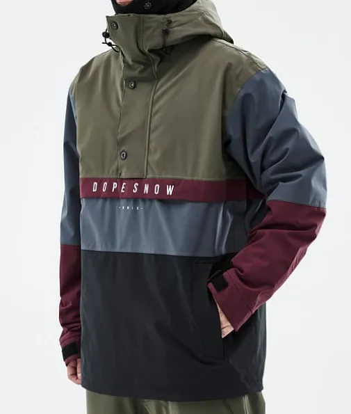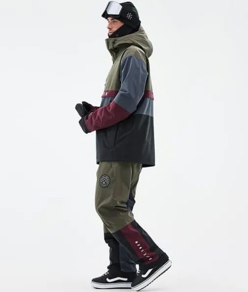 Legacy Track Snowboard jas Heren Olive Green/Burgundy/Metal Blue/Black|Een retro model met alle technische eigenschappen van nu. De Legacy is een anorak in jaren 90-stijl met een rechte pasvorm en technische kenmerken die niet onderdoen voor de meest geavanceerde ski-jassen. Dit pullover-model is gemaakt voor relaxte dagen op de piste. Als je geen fancy ritsen of andere ingewikkelde details nodig hebt, is de Legacy voor jou de perfecte keuze. De Legacy is nu gemaakt van verbeterd 4-way stretchmateriaal, zodat je maximaal kunt genieten van ieder moment in de sneeuw.