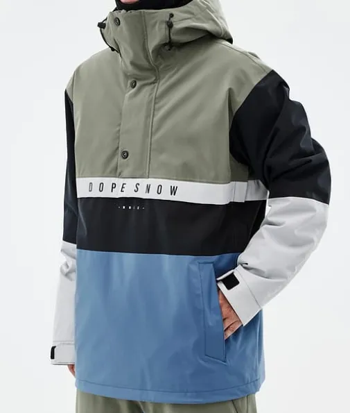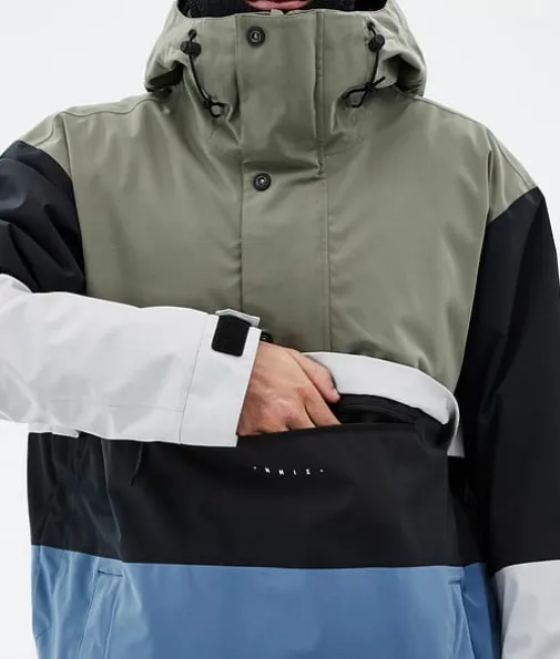 Legacy Track Ski jas Heren Greenish/Light Grey/Black/Blue Steel|Een retro model met alle technische eigenschappen van nu. De Legacy is een anorak in jaren 90-stijl met een rechte pasvorm en technische kenmerken die niet onderdoen voor de meest geavanceerde ski-jassen. Dit pullover-model is gemaakt voor relaxte dagen op de piste. Als je geen fancy ritsen of andere ingewikkelde details nodig hebt, is de Legacy voor jou de perfecte keuze. De Legacy is nu gemaakt van verbeterd 4-way stretchmateriaal, zodat je maximaal kunt genieten van ieder moment in de sneeuw.