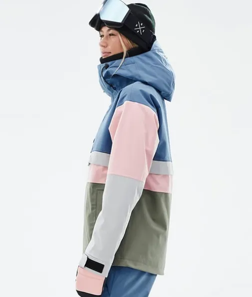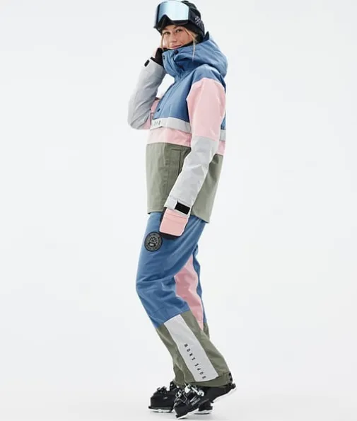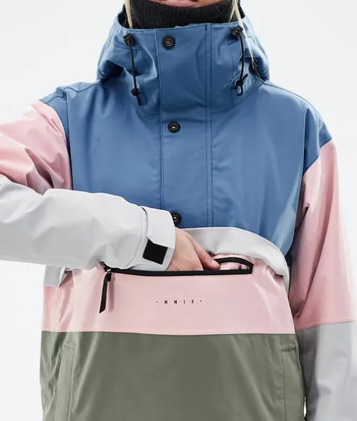 Legacy Track W Ski jas Dames Blue Steel/Light Grey/Soft Pink/Greenish|Een retro model met alle technische eigenschappen van nu. De Legacy is een anorak in jaren 90-stijl met een rechte pasvorm en technische kenmerken die niet onderdoen voor de meest geavanceerde ski-jassen. Dit pullover-model is gemaakt voor relaxte dagen op de piste. Als je geen fancy ritsen of andere ingewikkelde details nodig hebt, is de Legacy voor jou de perfecte keuze. De Legacy is nu gemaakt van verbeterd 4-way stretchmateriaal, zodat je maximaal kunt genieten van ieder moment in de sneeuw.