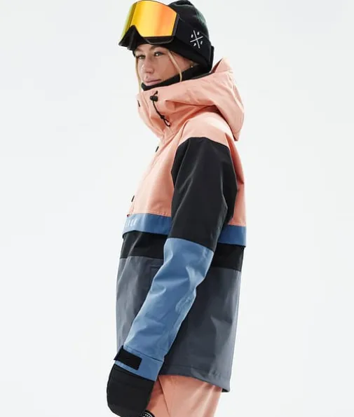 Legacy Track W Ski jas Dames Faded Peach/Blue Steel/Black/Metal Blue|Een retro model met alle technische eigenschappen van nu. De Legacy is een anorak in jaren 90-stijl met een rechte pasvorm en technische kenmerken die niet onderdoen voor de meest geavanceerde ski-jassen. Dit pullover-model is gemaakt voor relaxte dagen op de piste. Als je geen fancy ritsen of andere ingewikkelde details nodig hebt, is de Legacy voor jou de perfecte keuze. De Legacy is nu gemaakt van verbeterd 4-way stretchmateriaal, zodat je maximaal kunt genieten van ieder moment in de sneeuw.