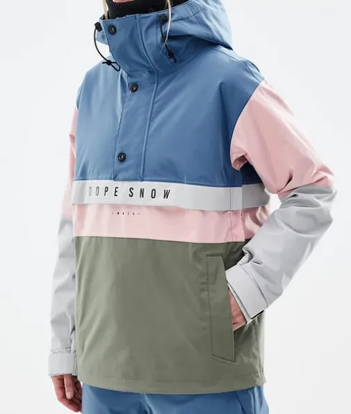 Legacy Track W Snowboard jas Dames Blue Steel/Light Grey/Soft Pink/Greenish|Een retro model met alle technische eigenschappen van nu. De Legacy is een anorak in jaren 90-stijl met een rechte pasvorm en technische kenmerken die niet onderdoen voor de meest geavanceerde ski-jassen. Dit pullover-model is gemaakt voor relaxte dagen op de piste. Als je geen fancy ritsen of andere ingewikkelde details nodig hebt, is de Legacy voor jou de perfecte keuze. De Legacy is nu gemaakt van verbeterd 4-way stretchmateriaal, zodat je maximaal kunt genieten van ieder moment in de sneeuw.