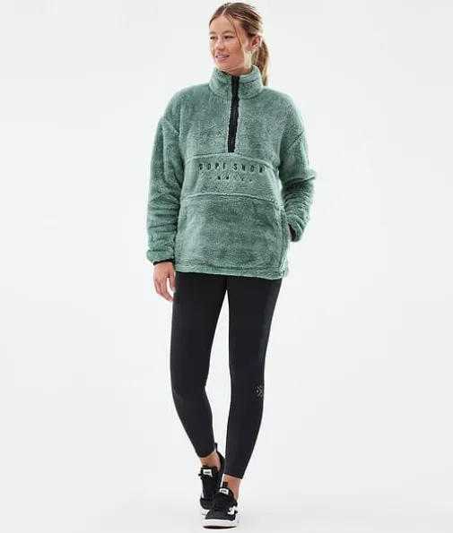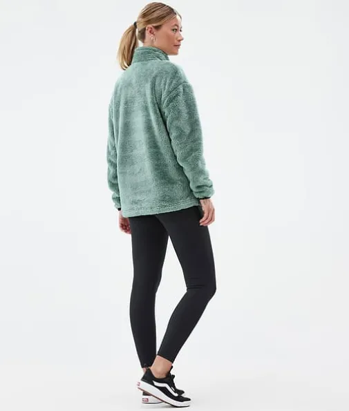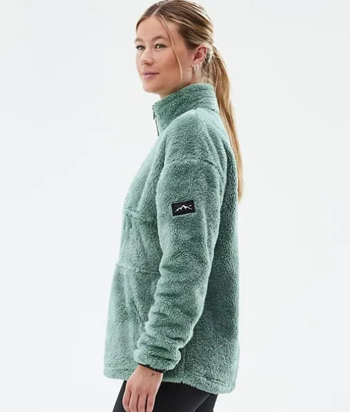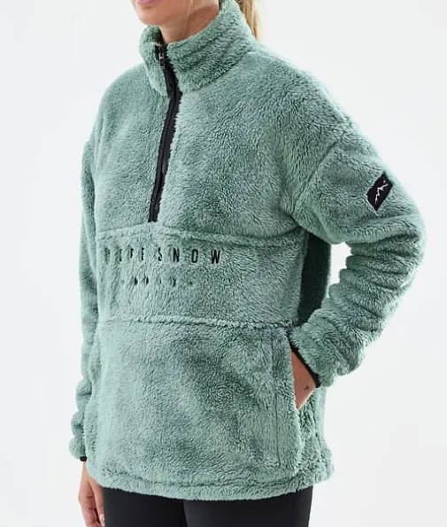Pile W Fleece Trui Dames Faded Green|Comfortabel, warm en klaar voor avontuur. Onze fleecetrui Pile is gemaakt van 100% hoogpolig polyesterfleece van 285 g/m² en is ademend en superzacht. Draag hem 's winters in het resort of gebruik hem als midlayer op koudere dagen op de piste.