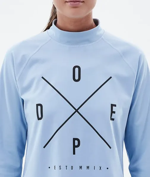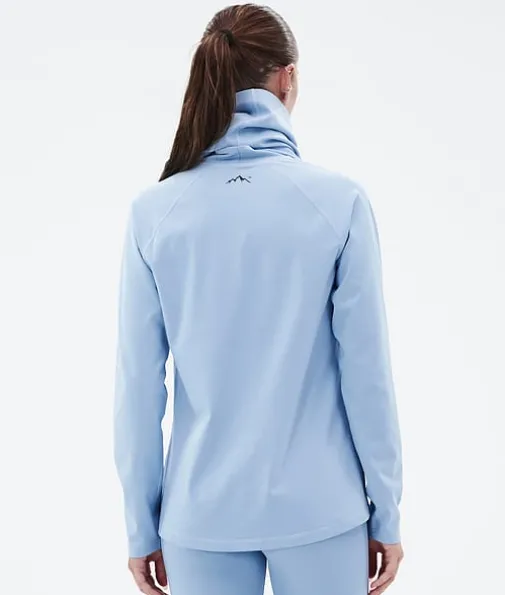 Snuggle W Basislaag Top Dames 2X-Up Light Blue|De nieuwste Snuggle-baselayers zijn perfect voor al je avonturen op de piste en daarbuiten. Ze zijn gemaakt van een elastische, ademende mix van elastaan en polyester, die ervoor zorgt dat ze snel drogen en vocht afvoeren. De Anti-Odour HeiQ-technologie voorkomt geurtjes en dankzij de zachte binnenkant zitten ze supercomfortabel. De opstaande kraag houdt je lichaamswarmte beter vast en dankzij de extra nekwarmer kun je zelf voor extra warmte of verkoeling zorgen, afhankelijk van de omstandigheden. De verstevigde flatlocknaden voorkomen schuren en zorgen voor optimale slijtvastheid. Snuggle-baselayers zijn het resultaat van een jarenlang proces van productverbeteringen, zodat jij ieder seizoen weer kunt genieten van maximaal comfort.