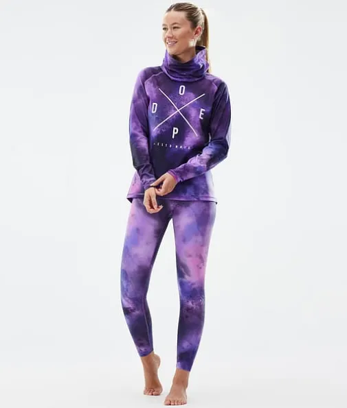 Snuggle W Basislaag Top Dames 2X-Up Dusk|De nieuwste Snuggle-baselayers zijn perfect voor al je avonturen op de piste en daarbuiten. Ze zijn gemaakt van een elastische, ademende mix van elastaan en polyester, die ervoor zorgt dat ze snel drogen en vocht afvoeren. De Anti-Odour HeiQ-technologie voorkomt geurtjes en dankzij de zachte binnenkant zitten ze supercomfortabel. De opstaande kraag houdt je lichaamswarmte beter vast en dankzij de extra nekwarmer kun je zelf voor extra warmte of verkoeling zorgen, afhankelijk van de omstandigheden. De verstevigde flatlocknaden voorkomen schuren en zorgen voor optimale slijtvastheid. Snuggle-baselayers zijn het resultaat van een jarenlang proces van productverbeteringen, zodat jij ieder seizoen weer kunt genieten van maximaal comfort.