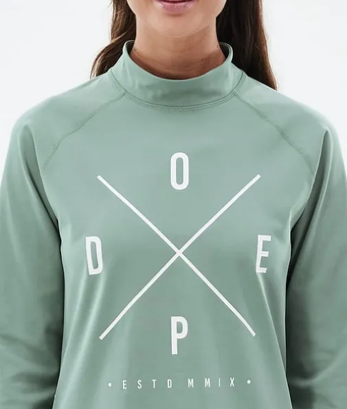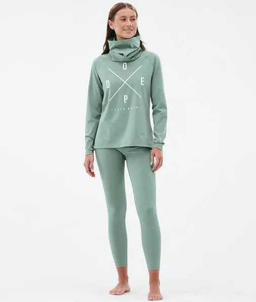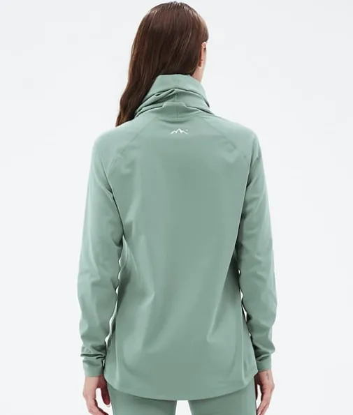 Snuggle W Basislaag Top Dames 2X-Up Faded Green|De nieuwste Snuggle-baselayers zijn perfect voor al je avonturen op de piste en daarbuiten. Ze zijn gemaakt van een elastische, ademende mix van elastaan en polyester, die ervoor zorgt dat ze snel drogen en vocht afvoeren. De Anti-Odour HeiQ-technologie voorkomt geurtjes en dankzij de zachte binnenkant zitten ze supercomfortabel. De opstaande kraag houdt je lichaamswarmte beter vast en dankzij de extra nekwarmer kun je zelf voor extra warmte of verkoeling zorgen, afhankelijk van de omstandigheden. De verstevigde flatlocknaden voorkomen schuren en zorgen voor optimale slijtvastheid. Snuggle-baselayers zijn het resultaat van een jarenlang proces van productverbeteringen, zodat jij ieder seizoen weer kunt genieten van maximaal comfort.